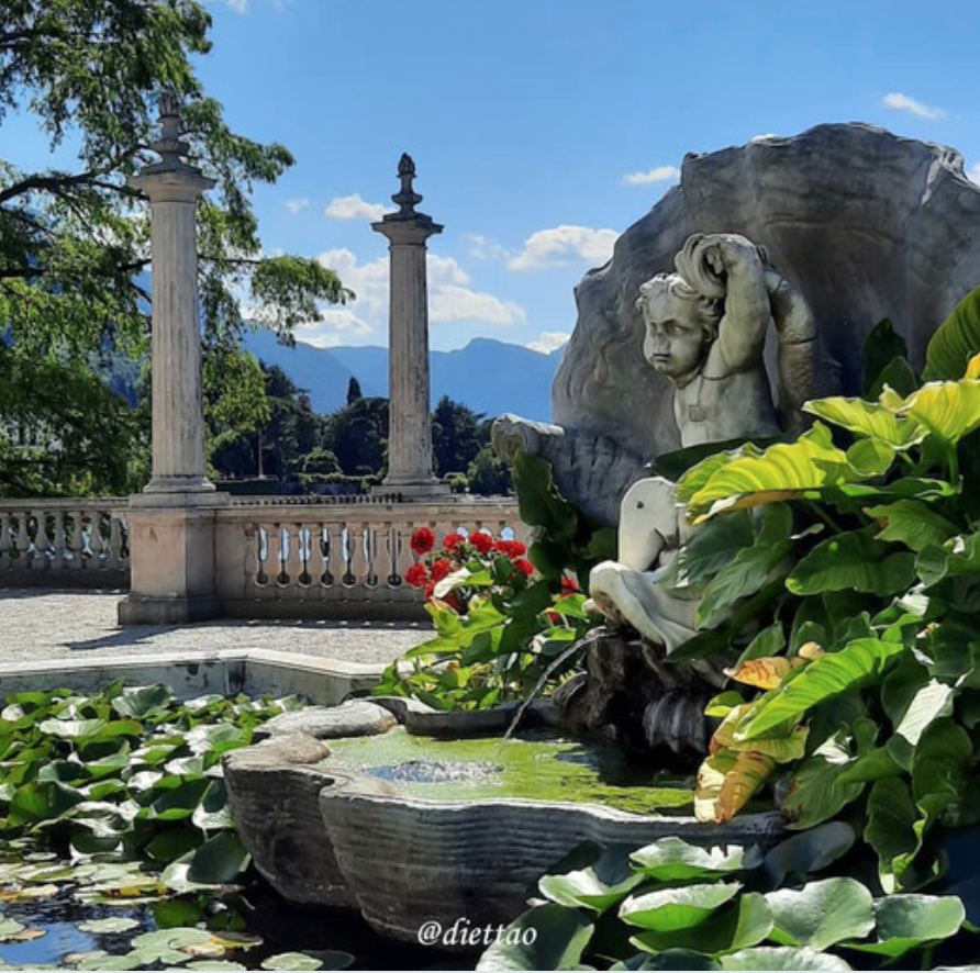 梅爾齊別墅花園原本是一座私人歷史住宅,是拿破崙時期的義大利共和國副總統弗朗切斯科·梅爾齊公爵(Francesco Melzi d’Eril)的夏季別墅,建於1808-1810年,整體風格為新古典主義風格,出自於國寶級建築師Giocondo Albertolli之手,不過目前已被列為義大利國家文物,開放給大眾參觀。整棟別墅其實說穿了就是一個超大的湖中花園,不論走到哪,都會被這美得不像話的美景驚艷!
