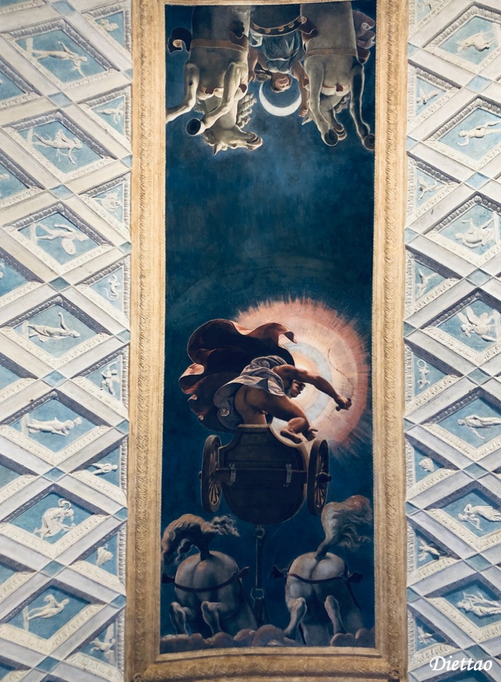 它的名字來源於丘比特和普賽克的寓言,取材於“變形記”,這個房間是我最喜歡的一個,雖然它不是最有名的,但這間房間的畫風以及色彩最吸引我。這個延續性的壁畫可以追朔至1526年至1528年之間,以一個非線性的敘述方式來闡述邱比特與其他神話的愛情故事。