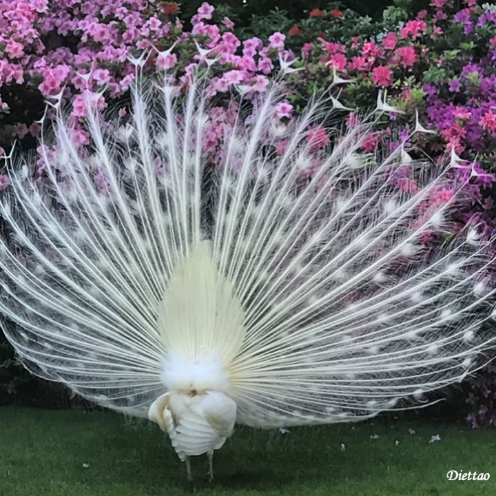 先前我提過的野生白孔雀就是這個!在這個島上有很多隻隨意的走動,而且他們開屏的次數也很頻繁。