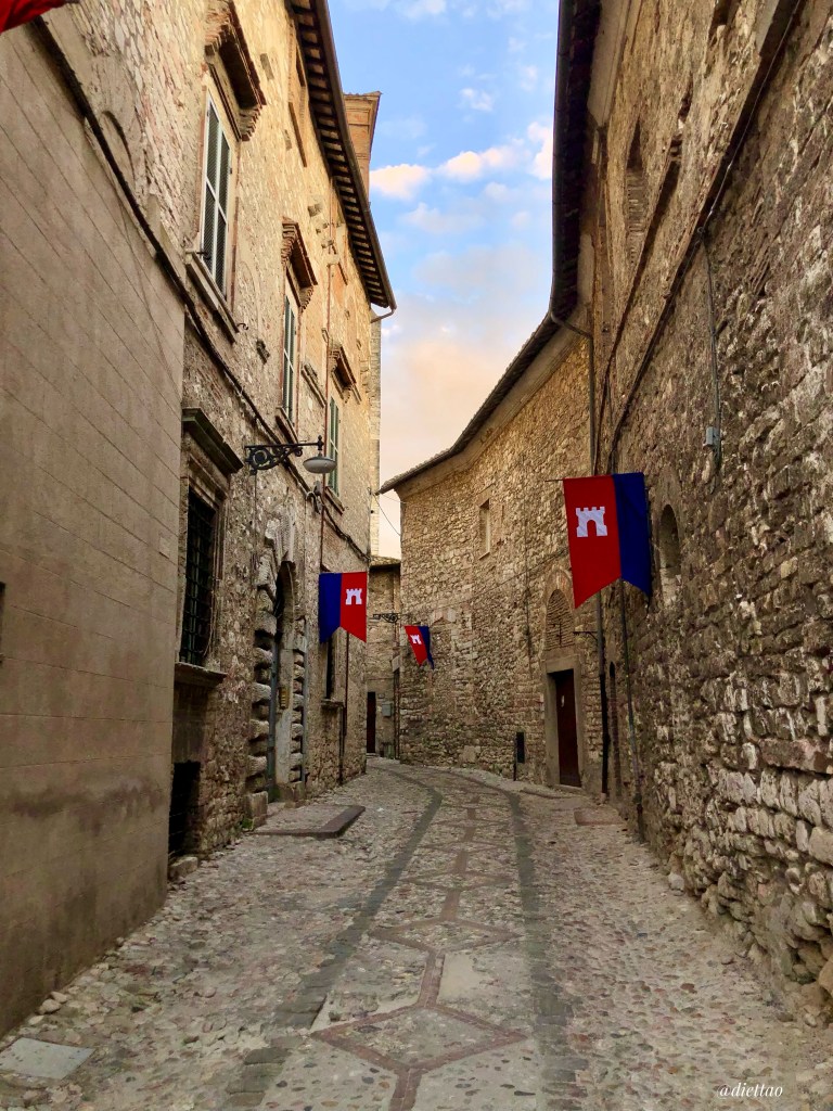 不得不說,當我抵達納爾尼Narni 的時候,真的有宛若在納尼亞傳奇電影現場的感覺,古老悠久的中世紀時代城堡以及街道上各種不同顏色的古老旗幟,彷彿這整座城仍停留在中世紀時代的時間裡。