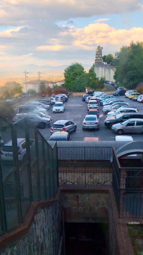 若是自駕來此的話,下高速公路不久後,就會看見納爾尼城市下的大型停車場,共有室外以及室內兩個部分,進入停車場取票以後,可以直接到室內停車場的最裡面,裡面會有直達電梯往上搭到市中心,這樣就不用用腳爬上去了!