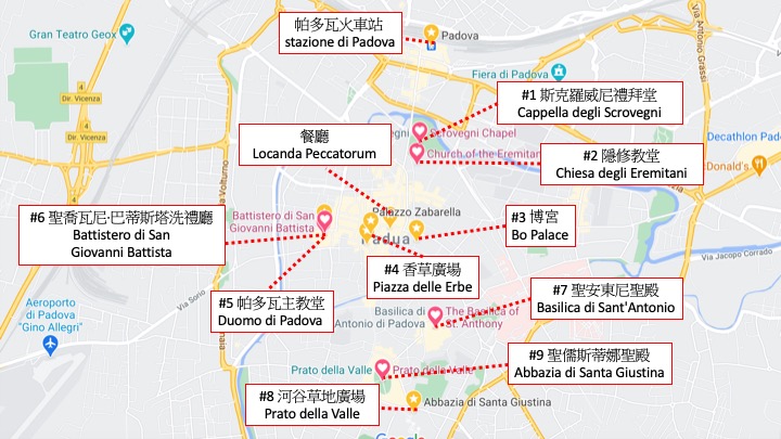 關於帕多瓦的景點,在之前的介紹中有提到在卡拉拉家族的統治下,帕多瓦在藝術的發展達到了巔峰,因此帕多瓦的景點非常的多而且都非常值得去參觀。