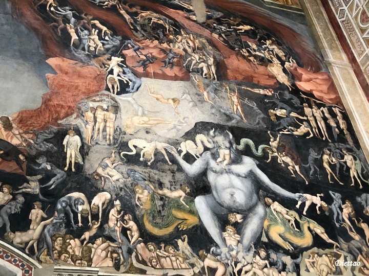 一走進正門,映入眼簾的就是喬托的最後的審判,其中最亮眼的地方就是右下角地獄的部分。