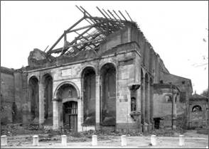 彩色的部分是原始壁畫僅存的部分,白色的部分則為後期經由修復師的描摹而完成的。目前整座教堂只剩這部分還有較完整的壁畫,其餘則因戰爭的破壞而無法修復。
