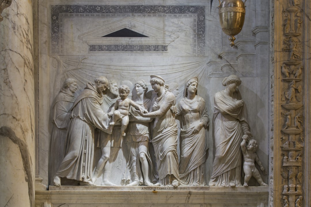 帕多瓦聖安多尼聖殿裡面,藝術價值最高的就是這個方舟禮拜堂la Cappella dell’Arca,方舟禮拜堂是文藝復興時期的傑作,始建於 1500 年,完成於同一世紀末。沿著牆壁上有九個大理石浮雕,每一個浮雕都非常的精細且具有極高的藝術價值。
