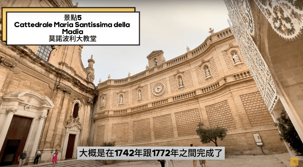 講到聖母瑪莉亞,那就一定要提到莫諾波利大教堂,因為這個教堂的故事真的太神奇了~這個教堂建於1742 年至1772 年間,採用巴洛克風格,根據傳說,由於屋頂的橫樑缺失,這座教堂的工程長期受阻,但最終是由神的意志完成的。傳說在有一碗,聖母瑪莉亞出現在一個神職人員的夢裡,說上天的光束已經到達港口,結果還真的在港口發現了一艘帶有聖母瑪利亞聖像的木筏於是就用船深的一部分完成了屋頂,至今已過去900 年後仍然完好無損。