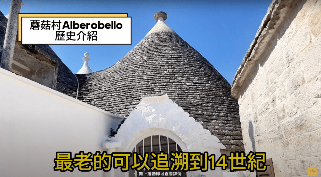 原來是因為當時的那不勒斯王國的一項法令,要求每個城市定居點都要進貢,所以農民就想想到了這個方法,利用粗加工的石灰石建造,用石灰乳粉刷牆壁,因為這種材料可以輕鬆拆除,然後再用於重建住宅,所以只要有人來查了,就把房子拆掉,等人走了,在蓋回去,這樣這裡就會被列為無人居住區,也就不用繳稅啦~