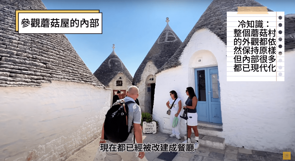 一間間的可愛小石頭屋,遠遠望去就好像是一朵朵的蘑菇,這就是觀光客口中的蘑菇村,但它的真名其實是Alberobello,直翻的意思就是美麗的樹,那你一定會很好奇,一個小小的市鎮是怎麼能變成全世界知名的旅遊勝地,它背後的故事到底是如何呢?