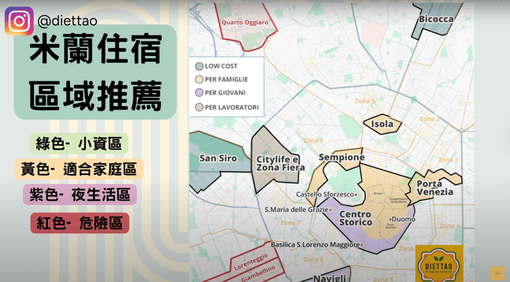 米蘭住宿區域選擇多樣,根據需求分為: