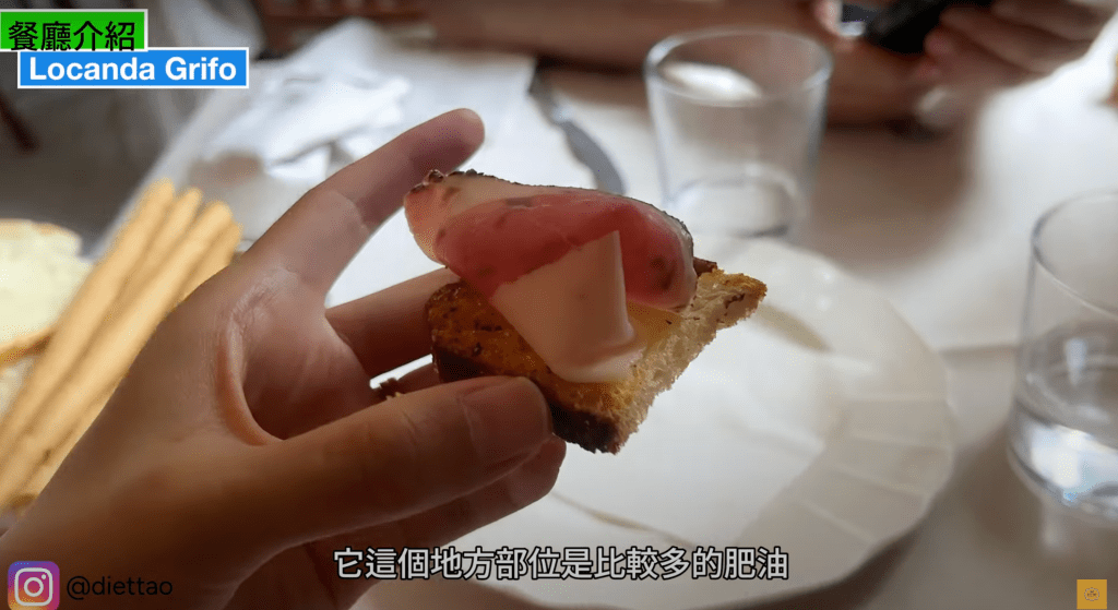 店家招待的開胃小點,是烤麵包配上Prosciutto
