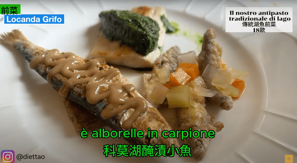 這道菜適用科莫湖的湖魚,每年五六月將魚打撈,經過清洗、去內臟,再用鹽醃幾天後掛起來風乾,然後放進木桶裡,夾著月桂葉,最後用石頭壓緊。這樣處理好的魚乾可以保存很久,味道鮮香濃郁。以前這道菜是窮人家才吃的,但現在已經變成科莫湖地區的經典美食~