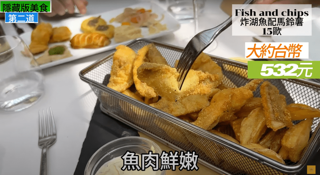 別以為只有英國有Fish and Chips,我們科莫湖這裡也有!!外皮炸得金黃酥脆,魚肉鮮嫩,搭配烤的酥脆可口的馬鈴薯,淋上一點檸檬汁,簡直是無法抗拒的美味!減肥的是~明天再說吧!